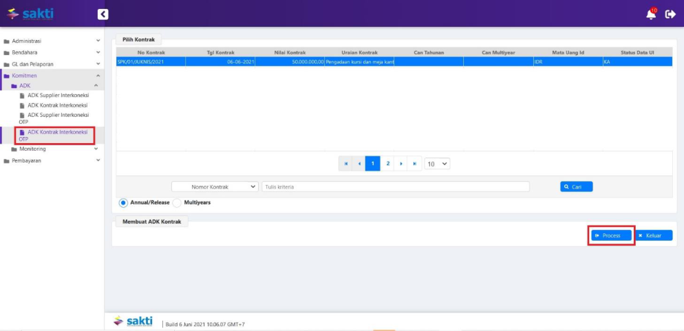 Atas ADK yang telah dibentuk, maka pihak KPPN akan melakukan proses Data Kontrak pada SPAN