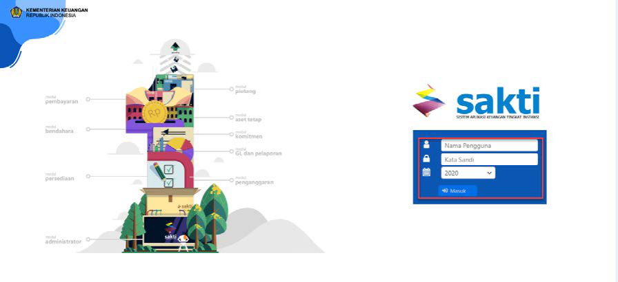 https://sakti.kemenkeu.go.id/ kemudian isi kolom nama pengguna (pastikan login menggunakan
