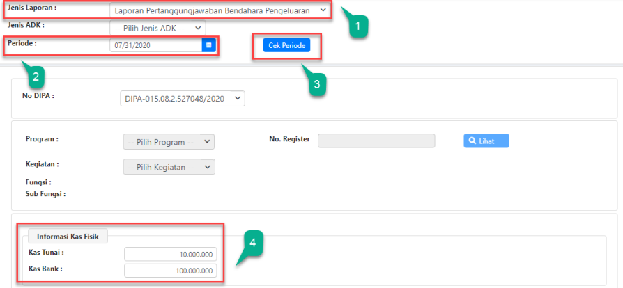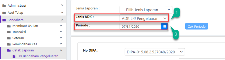 - Pada kolom Periode, pilih tanggal sesuai dengan periode pelaporan LPJ. Misalnya, jika ingin