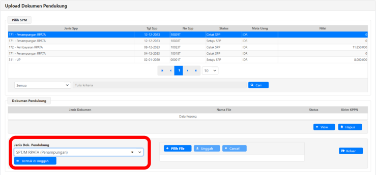 Upload Dokumen Pendukung à Pilih Jenis Dok.Pendukung SPTJM RPATA