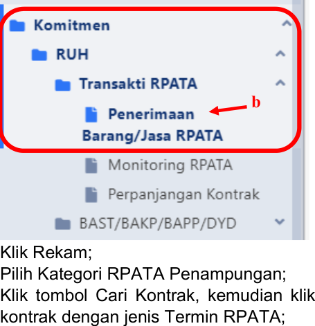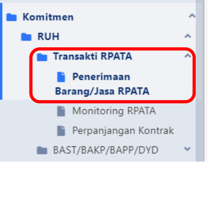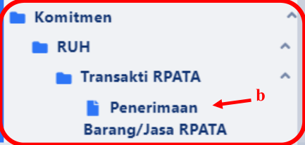 b. Masuk pada Modul Komitmen > RUH > Transaksi RPTA > Penerimaan Barang/Jasa