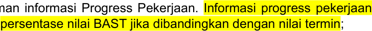 § Informasi progress pekerjaan direkam sebesar persentase nilai BAST jika