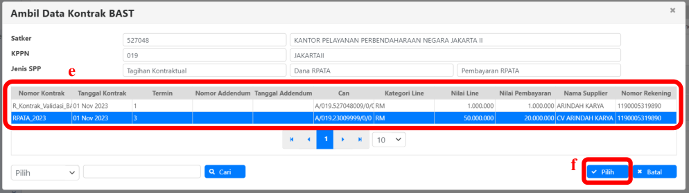 e. Pilih Termin RPATA yang telah direkam BAST Penampungan RPATA;