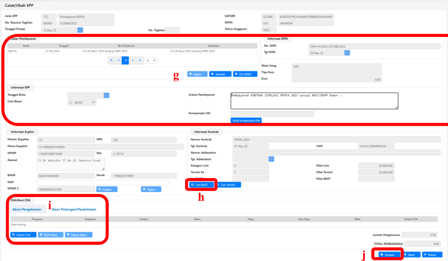 SPP Pembayaran RPATA bersamaan dengan BAST Pembayaran RPATA riil; -