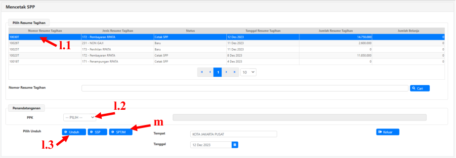 § Cetak SPTJM Penampungan RPATA dilakukan setelah cetak SPP.
