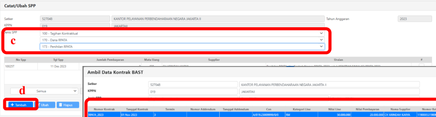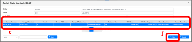 Pada form Daftar Kontrak yang muncul, pilih data kontrak;