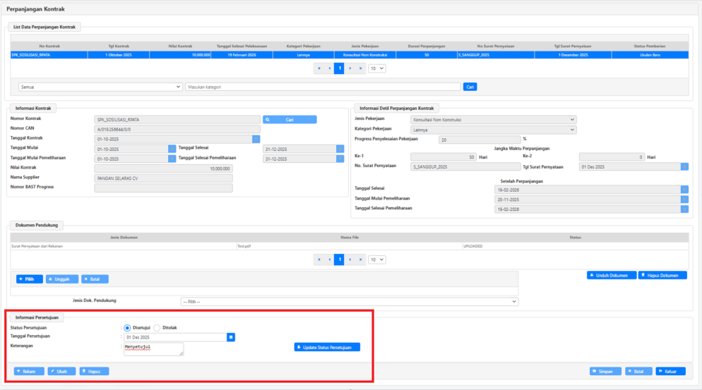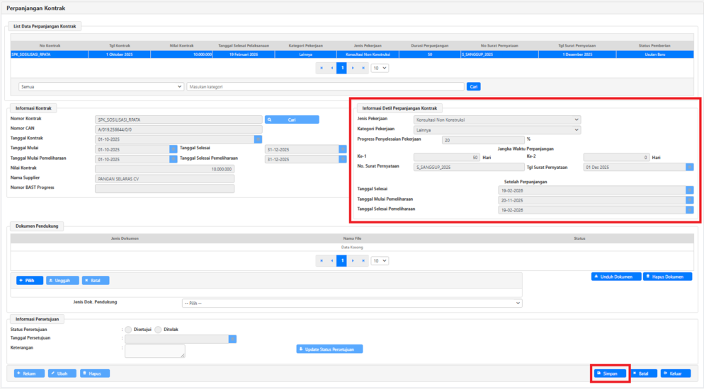 § Tidak dapat direkam jika Progress Penyelesaian Pekerjaan sudah 100%.