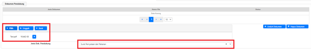 § User paling sedikit melampirkan dokumen pendukung berupa ‘Surat Pernyataan