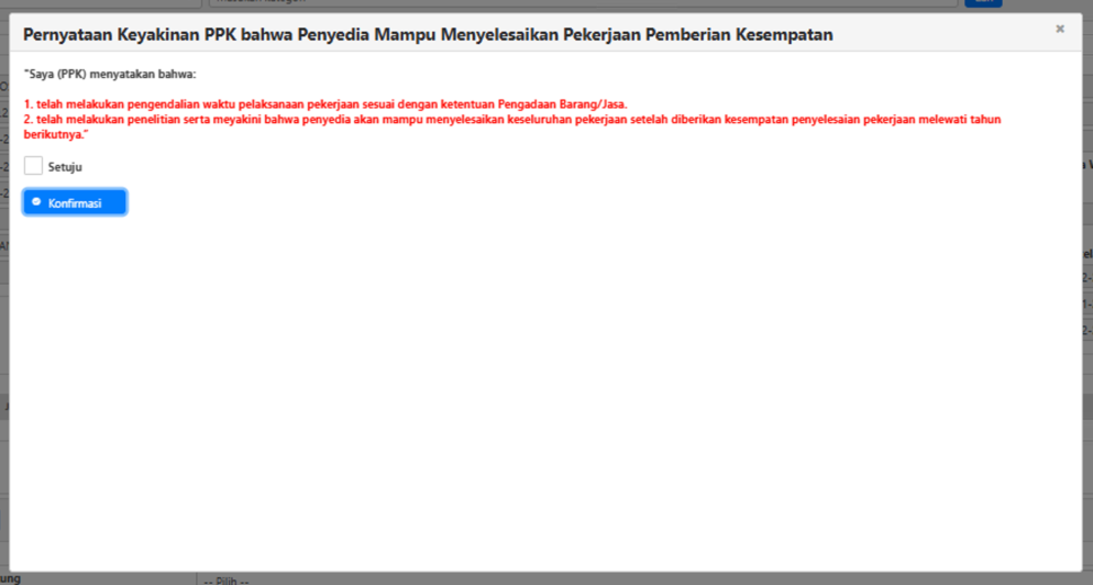 Apabila PPK akan memberi persetujuan pemberian kesempatan wajib menyatakan