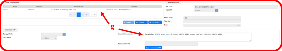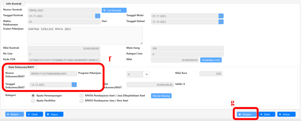f. Setelah memilih data kontrak dan Termin RPATA, rekam informasi Tanggal