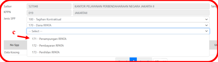 c. Pilih jenis SPP 171 – Penampungan RPATA;