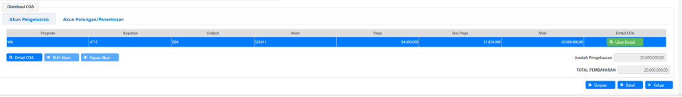 § Nomor Dokumen, Progress Pekerjaan, Nilai Detil COA terisi secara otomatis oleh