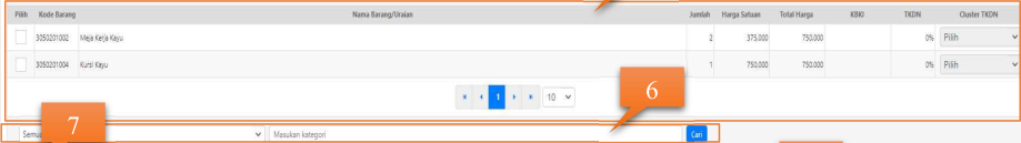 Tombol pilih semua daftar detil barang untuk perekaman informasi TKDN secara sekaligus.