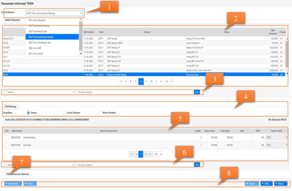 pendetilan informasi TKDN atas BAST Kontraktual maupun Non Kontraktual yang direkam pada