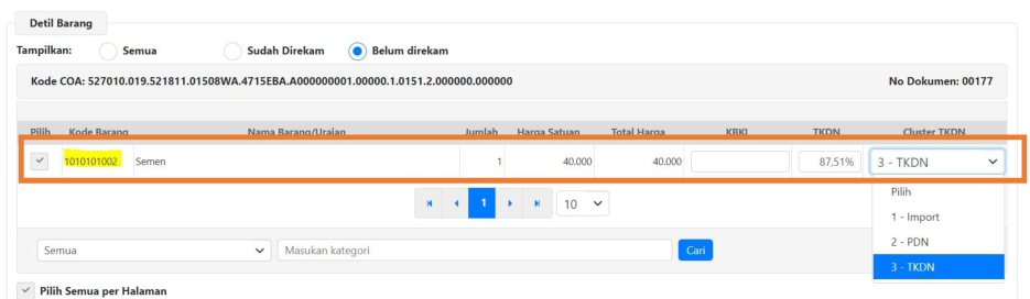 perekaman detil informasi TKDN. Untuk Detil barang, pendekatan perekaman detil adalah pada