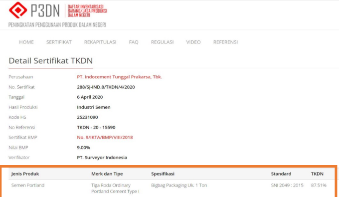 Untuk informasi nilai TKDN dapat diakses melalui tkdn.kemenperin.go.id. Berikut contoh