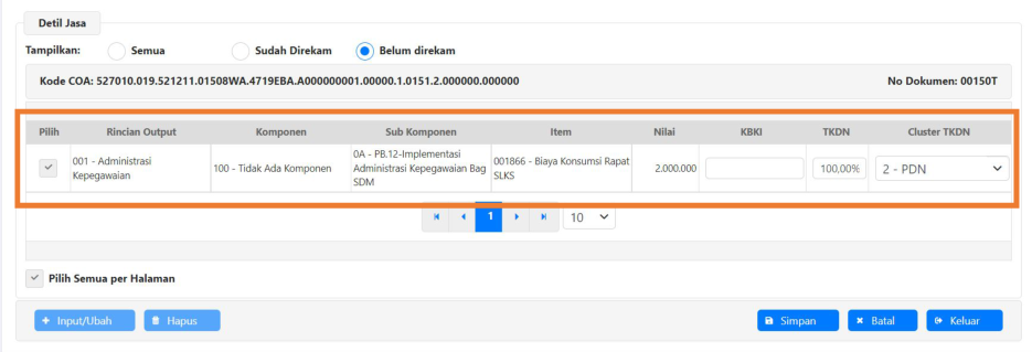2. Pada Grid daftar dokumen, Pilih Dokumen yang akan direkam informasi TKDNnya