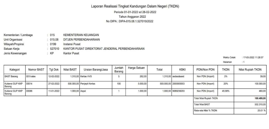 BAST. Berikut ini merupakan contoh perekaman informasi TKDN atas transaksi SPP Non