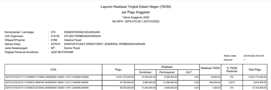 Berikut format cetakan Laporan Realisasi Tingkat Kandungan Dalam Negeri(TKDN) dan Laporan