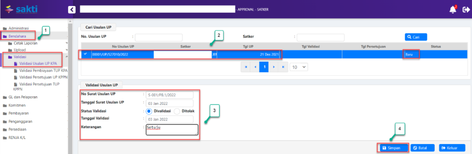 4. Validasi usulan UP oleh KPA satker.
