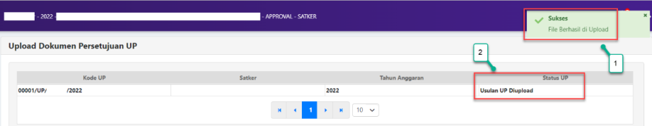 1. Gambar diatas adalah contoh status UP satker yang sudah dilakukan approval/persetujuan
