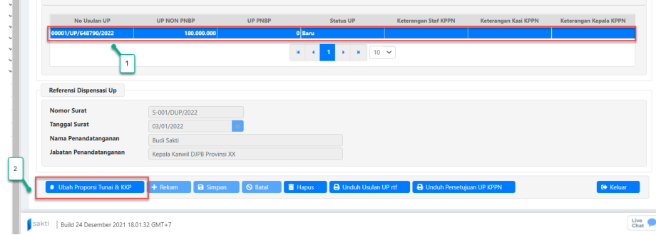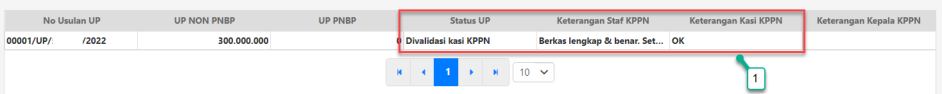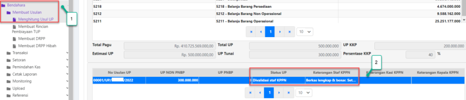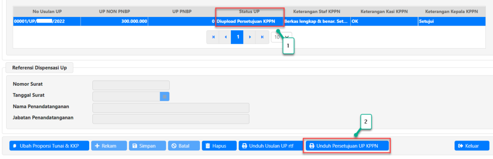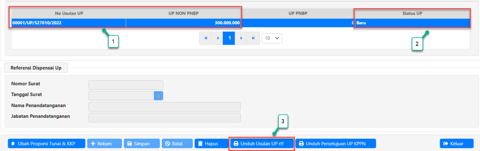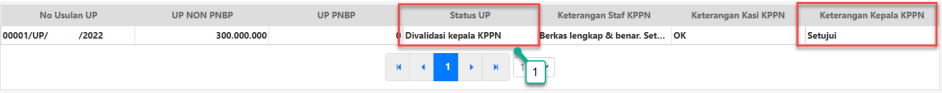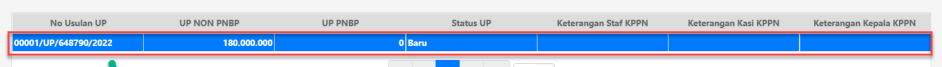 2. Status UP akan terlihat pada kotak yang berisi informasi nomor usulan UP. Pada gambar