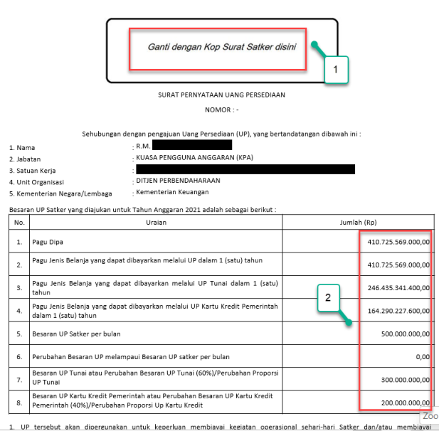 • Format Surat Pernyataan Uang Persediaan dan Permohonan Persetujuan UP KKP yang